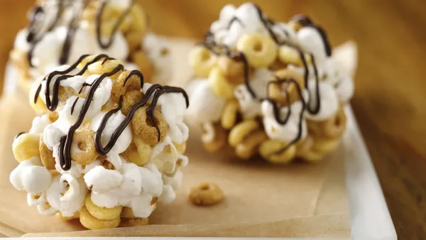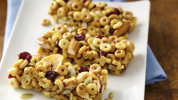 Step4Cut off small corner of sweetened cream cheese bag; squeeze and drizzle over cereal mixture. Serve immediately.