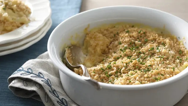 Deliver a side sure to have them asking for seconds—this two-cheese potato gratin with Cheddar, Gruyère and just a touch of Dijon mustard for added zip.