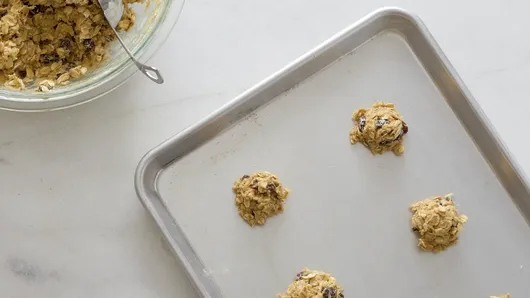 Scoop dough into rounded tablespoonfuls using a tableware spoon or measuring tablespoon and drop at least 2 inches apart onto ungreased cookie sheets.