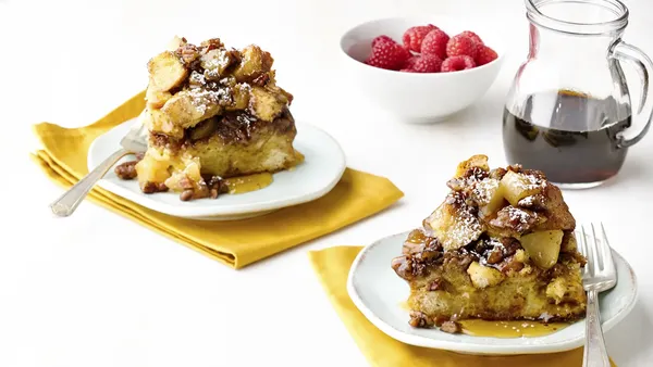 Everyone wants to have a few great brunch recipes that can be made ahead of time. This is one of them. The flavor of this French toast? Think Bananas Foster—minus the rum.