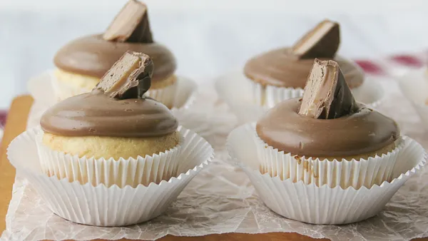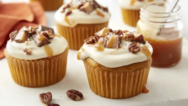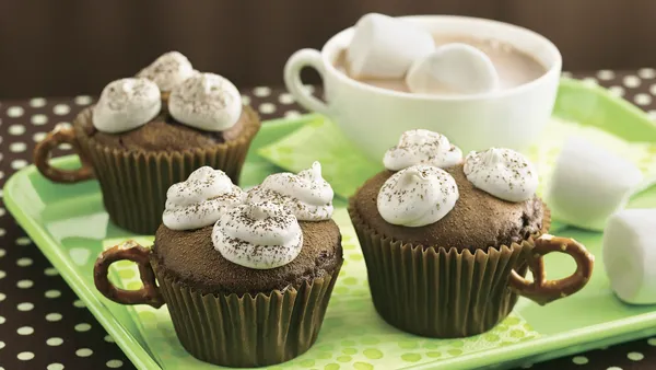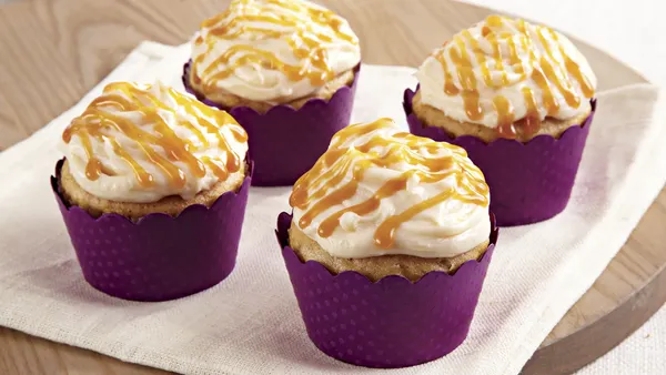 Step2In large bowl, beat all cupcake ingredients with electric mixer on low speed 30 seconds, then on medium speed 2 minutes, scraping bowl occasionally. Divide batter evenly among muffin cups.