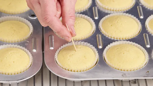 Pop your pan in the oven and bake for about 20 minutes, or until a toothpick inserted into the center of a cupcake comes out clean. To make sure they’re all baked, test a few cupcakes by gently inserting the toothpick into the center of different ones. This helps ensure even baking, as ovens can sometimes have hot spots. You’ll know they’re done when the toothpick comes out clean, with no wet batter sticking to it.