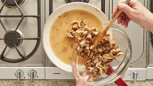 Step4Gradually stir in broth. Heat to boiling over medium heat, stirring constantly. Boil and stir 1 to 2 minutes or until gravy thickens. Stir in jackfruit mixture; cook 1 to 2 minutes or until heated through. Top with thyme.