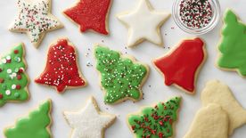 Heat oven to 375° F. Lightly grease cookie sheet with shortening or cooking spray. Divide dough in half. Roll each dough half to1/4 inch thickness on generously floured surface. Cut into desired shapes with 2- to 2 1/2-inch cookie cutters. On cookie sheet, place cutouts about 2 inches apart.