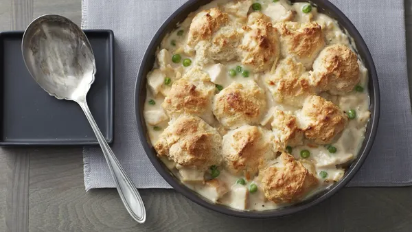 Want something meatless? Try a veggie-packed casserole with a dilly of a biscuit top.
