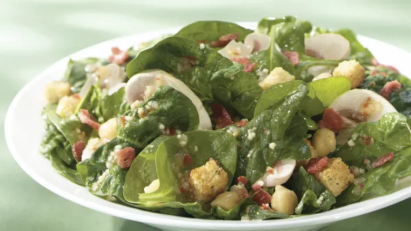 Step1Remove large stems from spinach; tear spinach into bite-size pieces. Place spinach in large bowl. Add beans; set aside.