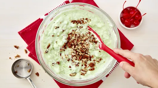 var configuration = {"title":"Watergate Salad Original Recipe","introduction":"\u003cp\u003eWatergate salad, also known as pistachio salad, isn\u0027t quite a salad in the conventional sense. This delectable delight is more of a whipped dessert containing pistachio pudding, canned pineapple, whipped cream, and marshmallows.\u003c/p\u003e\n\u003cp\u003eThe name itself sparks intrigue. You may wonder, why is it called Watergate salad? It did originate around the time of the Watergate scandal in the early 70’s, but the actual origins of the name are unclear.\u003c/p\u003e \n\u003cp\u003eIn many households, Watergate salad is fondly referred to as Pistachio Delight, thanks to the pistachio pudding in the recipe. So, whenever you come across the term pistachio salad, know that it\u0027s synonymous with the Watergate salad.\u003c/p\u003e\n\u003cp\u003eWhile popular on many Thanksgiving tables, the Watergate salad recipe is versatile enough to be relished as a wonderful side dish or dessert for various occasions. It\u0027s the delectable delight that knows no season.\u003c/p\u003e\n\u003cp\u003eFor more \u003ca href=\u0022https://www.bettycrocker.com/special-occasions/thanksgiving-recipes\u0022\u003eThanksgiving recipes\u003c/a\u003e for our \u003ca href=\u0022https://www.bettycrocker.com/recipes/courses/side-dish-recipes\u0022\u003efavorite salads, sides, desserts, and more\u003c/a\u003e look no further!\u003c/p\u003e","servingSize":"About 2/3 Cup","image":{"small":{"media":"(min-width: 0px)","src":"https://mojo.generalmills.com/api/public/content/ULkJMWn1Rk-k8zRcBZ3vxA_webp_base.webp?v=41c39ac2\u0026t=e724eca7b3c24a8aaa6e089ed9e611fd"},"medium":{"media":"(min-width: 500px)","src":"https://mojo.generalmills.com/api/public/content/ULkJMWn1Rk-k8zRcBZ3vxA_webp_base.webp?v=41c39ac2\u0026t=191ddcab8d1c415fa10fa00a14351227"},"large":{"media":"(min-width: 767px)","src":"https://mojo.generalmills.com/api/public/content/ULkJMWn1Rk-k8zRcBZ3vxA_webp_base.webp?v=41c39ac2\u0026t=191ddcab8d1c415fa10fa00a14351227"},"alt":"Watergate Salad Original Recipe"},"contributor":{"label":"By","name":"Betty Crocker Kitchens","profileUrl":"/about-us","displayDate":{"label":"Updated","date":"Jul 10, 2024"}},"ingredientGroups":[{"ingredients":[{"quantity":"1","description":"can (20 oz) crushed pineapple in juice, undrained"},{"quantity":"1","description":"box (4-serving size) pistachio instant pudding \u0026 pie filling mix (dry)"},{"quantity":"3/4","description":"cup miniature marshmallows"},{"quantity":"2","description":"cups frozen (thawed) whipped topping"},{"quantity":"1/3","description":"cup chopped pecans"}]}],"steps":[{"description":"In medium bowl, mix pineapple, pudding mix and marshmallows.","stepShotImageUrl":"//mojo.generalmills.com/api/public/content/W7zGF4IpRlyAlE56Et4Tyg_webp_base.webp?v=e45fe411\u0026t=51a43a57af4046789e5a7f20567b1195"},{"description":"Gently stir in whipped topping. Cover and refrigerate at least 1 hour or up to 2 days.","stepShotImageUrl":"//mojo.generalmills.com/api/public/content/UUGHmsWyTlmWQwQ4Fkffew_webp_base.webp?v=37e78fbf\u0026t=51a43a57af4046789e5a7f20567b1195"},{"description":"Remove from refrigerator, and uncover. Gently stir in pecans.","stepShotImageUrl":"//mojo.generalmills.com/api/public/content/ZNnJl58zSHCm6ndXC4WPtQ_webp_base.webp?v=0c67dd8f\u0026t=51a43a57af4046789e5a7f20567b1195"},{"description":"Place salad in serving bowl to serve. Cover and refrigerate any remaining salad.\n","stepShotImageUrl":"//mojo.generalmills.com/api/public/content/ITS89yoQQ1aC0uwXwUeN8w_webp_base.webp?v=c40a1b71\u0026t=51a43a57af4046789e5a7f20567b1195"}],"tips":[{"title":"","description":"Our Watergate salad is a 5-ingredient classic pistachio side dish/ dessert that’s easy to put together for your next big family feast or potluck.","category":"Rich Snippet","tipShots":[]},{"title":"","description":"Swap in chopped, shelled pistachio nuts or walnuts instead of pecans in this side dish salad.","category":"Substitution","tipShots":[]},{"title":"","description":"For a pretty presentation, top salad with extra whipped topping, chopped nuts and maraschino cherries before serving.","category":"Presentation/Garnish","tipShots":[]},{"title":"","description":"This salad can be made up to 2 days ahead. We like to stir the chopped nuts into the salad just before serving for a nice crunch. Chopped nuts can also be stirred in with the pineapple, pudding mix and marshmallows if serving that day.","category":"Do-Ahead","tipShots":[]},{"title":"","description":"Be sure not to drain the can of crushed pineapple in juice before using. This helps to hydrate the pudding mix when stirring with the other ingredients.","category":"Recipe/Ingredient Facts","tipShots":[]},{"title":"","description":"Kitchen Tested (by RDC during development): 4/2024 ","category":"Kitchen Tested","tipShots":[]}],"kitchenTips":[{"title":"","description":"Swap in chopped, shelled pistachio nuts or walnuts instead of pecans in this side dish salad.","category":"Substitution","tipShots":[]},{"title":"","description":"For a pretty presentation, top salad with extra whipped topping, chopped nuts and maraschino cherries before serving.","category":"Presentation/Garnish","tipShots":[]},{"title":"","description":"This salad can be made up to 2 days ahead. We like to stir the chopped nuts into the salad just before serving for a nice crunch. Chopped nuts can also be stirred in with the pineapple, pudding mix and marshmallows if serving that day.","category":"Do-Ahead","tipShots":[]},{"title":"","description":"Be sure not to drain the can of crushed pineapple in juice before using. This helps to hydrate the pudding mix when stirring with the other ingredients.","category":"Recipe/Ingredient Facts","tipShots":[]}],"additionalContent":[{"title":"How to Make Watergate Salad","description":"\u003cp\u003eAre you wondering how to make Watergate salad, or even what is Watergate salad? Good questions! We have a comprehensive guide to the Watergate S