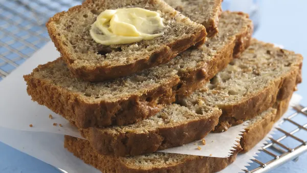 Whole-grain cereal, eggs whites instead of whole eggs and fat-free yogurt set this banana bread apart.
